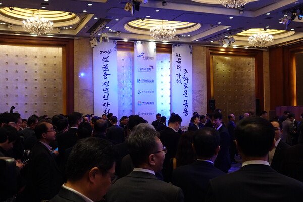 서울 소공동 롯데호텔 2층에서 범금융신년인사회가 열렸다.윤창현 국회 정무위 위원이복현 금융감독원 원장이 금감원장이 신년사를 시작하고 있다.이창용 한국은행 총재김주현 금융위원회 위원장의 신년사 낭독백혜련 정무위 위원장이 날 슬로건 “함께의 가치, 조화로운 금융”행사 중간 업계 관계자들이 담소를 나누고 행사자 인근에 위치해 있다.신년사에 이어 주요 인사들이 한 테이블에 모여 청중을 향해 있다.주요 인사들. 한 쪽 테이블 촬영행사 축하공연, 한국의 전통 악기 중 하나인 큰 북 네대가 웅장한 진동으로 공간에 퍼진다.행사 끝무렵 촬영