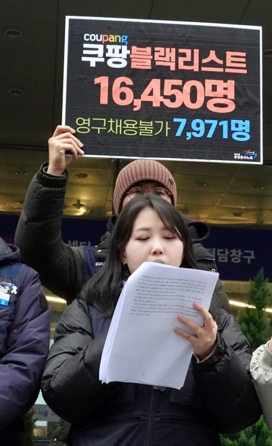 저는 근무태만이라는 사유로 무기한 채용불가로 분류되어 블랙리스트 명단에 올라있습니다. 2022년 6월 인천1센터에서 계약갱신에 탈락된 직후입니다. 저는 근무태만이라는 사유가 그다지 놀랍지 않습니다. 비록 노조활동을 하지 않았던 첫 계약 갱신때는 같은 평가자로부터 높은 정수를 얻었고, 업무 능력도 인정받았지만 말입니다. 계약 갱신 직후 노동조합 조끼를 입고 현장에서 적극적인 노조활동을 시작하자, 저를 칭찬했던 관리자들은 동료들과 이야기만 나누어도 최효 사원님은 “업무 시간에 일을 안 한다”고 윽박지르기 시작했습니다. 관리자들에게 “저의 UPH가 다른 사원님들과 비교해서 얼마나 뒤떨어지는지, 제가 배치받은 출고건이 늦게 처리되어서 출고량에 지장이 생긴 바가 있는지 객관적인 데이터로 납득시켜달라. 내가 정말 일을 안 한게 있다면 시정하겠다”고 말했지만 제게 돌아온 것은 열린 대화와 설득이 아닌 여전히 “최효 사원님은 업무 시간에 일을 하지 않는다”였습니다. 그리고 저의 블랙리스트 등재 사유는 그대로 근무태만이 되었습니다. 권한이 집중된 소수의 관리자의 입김으로 블랙리스트가 작성되고, 당사자의 의견은 전혀 반영되지 않는 쿠팡의 비민주적인 의사 결정 구조가 여실히 드러납니다. 마지막으로 2월 14일 쿠팡 뉴스룸에 게재된 반박문 중 “CFS는 매년 수십만명의 청년, 주부, 중장년층에게 소중한 일자리를 제공하고 있다”는 내용에 대해 발언하고 마치고자 합니다. 쿠팡은 수십만명의 청년, 주부, 중장년층 노동자를 열악한 노동환경에 방치하고 더 많은 이윤을 뽑아내기 위한 무기로 블랙리스트를 휘두르고 있습니다. 노동자를 소중하게 대하지 않고 수많은 사람들 표적해고하 쿠팡은 반드시 그에 맞는 처벌을 받기 바랍니다”라고 전했다.