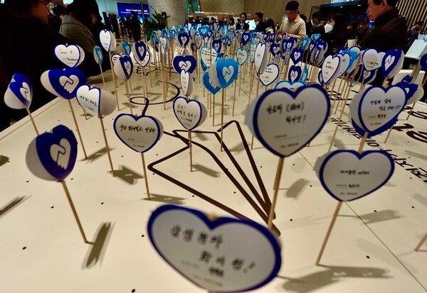 주총 회장 앞에는 주주들의 바람들을 적은 메모를 직접 적어 하트모양으로 꽂아 놓는 코너가 있었다.
