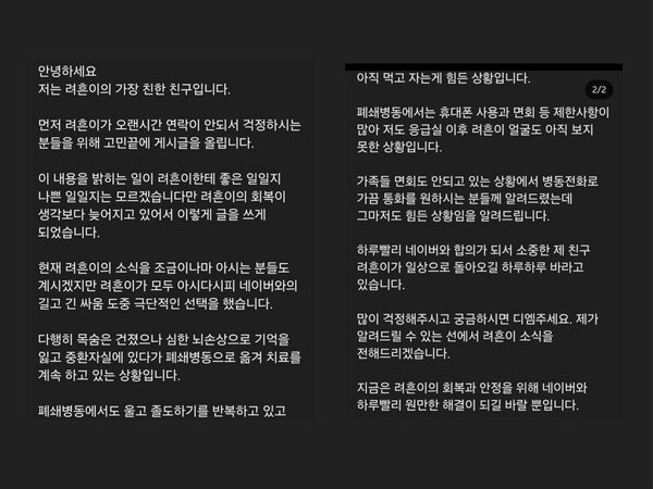 작년 정무위 국감 참고인으로 출석해 눈물로 억울함을 쏟아냈던 뉴려 김려흔 대표가 최근 극단적 선택을 한 뒤 심한 뇌손상으로 기억을 잃고 올해 초 폐쇄 병동에서 치료받고 있다. 5월 13일 현재는 연락이 두절된 상황이다. 작년 10월경 기자와 인터뷰를 나눴던 김 대표는 당시 최승재 전 국민의 힘 의원 등 몇몇 의원과 국회에서 많은 시간을 투자해 억울한 중소기업들의 입장을 알게 됐다.